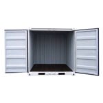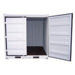 Notre conteneur de stockage 8 pieds dispose d’une ossature réalisée en profils d’acier, épaisseur 3mm, entièrement soudés. Les parois et le plafond sont en tôle laminée d’épaisseur 1,5mm et le plancher est en bois massif, épaisseur 25mm, traité anti-humidité. Il est équipé d’un volet de protection pour le cadenas.